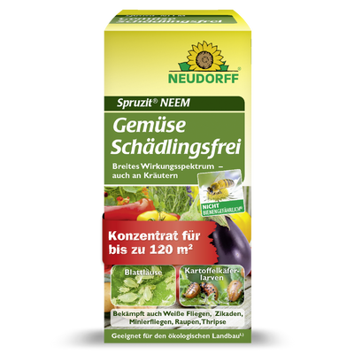 Jeśli szukasz skutecznego rozwiązania przeciwko irytującym owadom w swoim ogrodzie, Neudorff Spruzit NEEM Vegeta Pest Free zapewni Ci ukierunkowany efekt. Bogaty koncentrat skutecznie zwalcza szkodniki ssące, gryzące i zgryzające liście, takie jak mszyce, stonki ziemniaczane, mączliki i wciornastki. Dzięki sprawdzonej substancji aktywnej azadirachtin cykl rozwojowy owadów zostaje przerwany tak, że nie mogą już wyrządzać szkód. Produkt można stosować na różne sposoby do pomidorów, ogórków, cukinii, ziemniaków, świeżych ziół i roślin ozdobnych. Dużym plusem jest krótki czas oczekiwania na zbiory, który w zależności od uprawy wynosi od trzech do czternastu dni. Koncentrat wystarcza na powierzchnię do 120 m2 i można go łatwo nakładać metodą natrysku lub polewania. Chroń skutecznie swoje cenne rośliny warzywne i zioła przed nieurodzajami i wybierz produkt o niskim ryzyku odporności dla silnego wzrostu roślin.